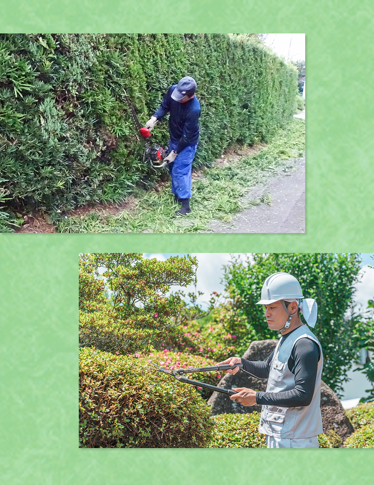 | 事業内容 | 特殊伐採、伐採、剪定、草刈り・芝刈り、その他(砂利敷き、抜根など) |